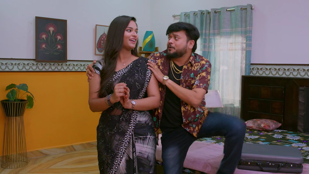 గోల్డ్ బాబు కావాలనే కుయిలీని తన అందాన్ని పొగుడుతూ దుబాయిలో తన స్టేటస్ గురించి బాగా బిల్డుప్ ఇస్తాడు. అవి అన్ని నిజం అనుకుని కుయిలీ గోల్డ్ బాబుతో చనువుగా ఉంటుంది. కుయిలీ గోల్డ్ బాబును “మీ గది చూపిస్తాను బావ గారు” అంటూ గదికి తీసుకువెళ్తుంది. అక్కడ అతడు “నేను నిన్ను తీసుకుపోవడానికి వచ్చాను” అంటాడు. కుయిలీ “నాకు సిగ్గేస్తుంది బావా” అంటుంది. ఆ తరువాత గోల్డ్ బాబు తన సూట్కేస్ ఓపెన్ చేసి చార్జర్ వెతుకుతాడు. అప్పుడు గోల్డ్ బిస్కెట్లు కనిపిస్తాయి. కుయిలీ ఆశ్చర్యంతో “ఇవి నిజంగా గోల్డ్ బిస్కెట్సా?” అని అడుగుతుంది. అతడు “ఇవి తక్కువే, దుబాయ్లో కట్టలు కట్టల్లో ఉన్నాయి” అని చెప్పడంతో ఆమె సంబరపడిపోతుంది.