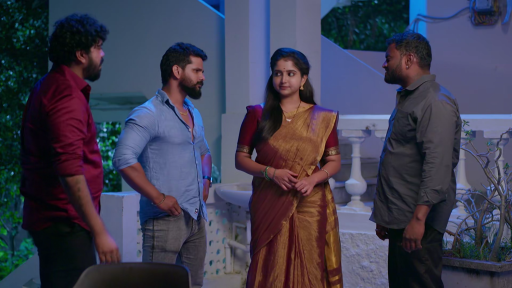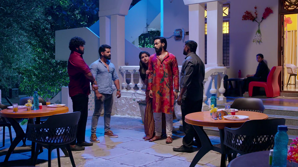 కావ్య వాష్రూమ్కి వెళ్లేలోపు ముగ్గురు రౌడీలు ఆమెపై కామెంట్ చేస్తారు. కావ్య మొదట రాజ్ పెట్టిన నటులు అనుకుంటుంది. కానీ వాళ్లు చెప్పే మాటలు గంభీరంగా, అసభ్యంగా ఉండడంతో ఆమె షాక్ అవుతుంది. వాళ్లు బలవంతంగా ఆమెను రూమ్కి లాక్కెళ్లాలని ప్రయత్నిస్తారు.