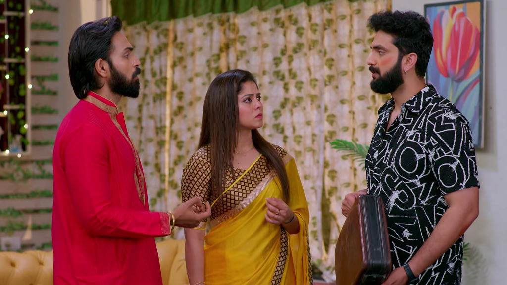 అంతలో రాజ్ వచ్చి రాహుల్కి చెక్ ఇస్తూ “ఈరోజు 11 గంటలకు టెండర్ ఉంది. 20 లక్షల రూపాయలు డిపాజిట్ కట్టాలి. నువ్వే బ్యాంక్కి వెళ్లి డబ్బు డ్రా చేసి, టైంకి టెండర్ ఆఫీస్కి వెళ్లాలి.ఇలాంటి పనులు చూసుకుంటే నీకు కూడా హెల్ప్ అవుతుంది” అని చెప్తాడు. ఇంట్లో అందరూ ఒక్కసారిగా షాక్ అవుతారు.