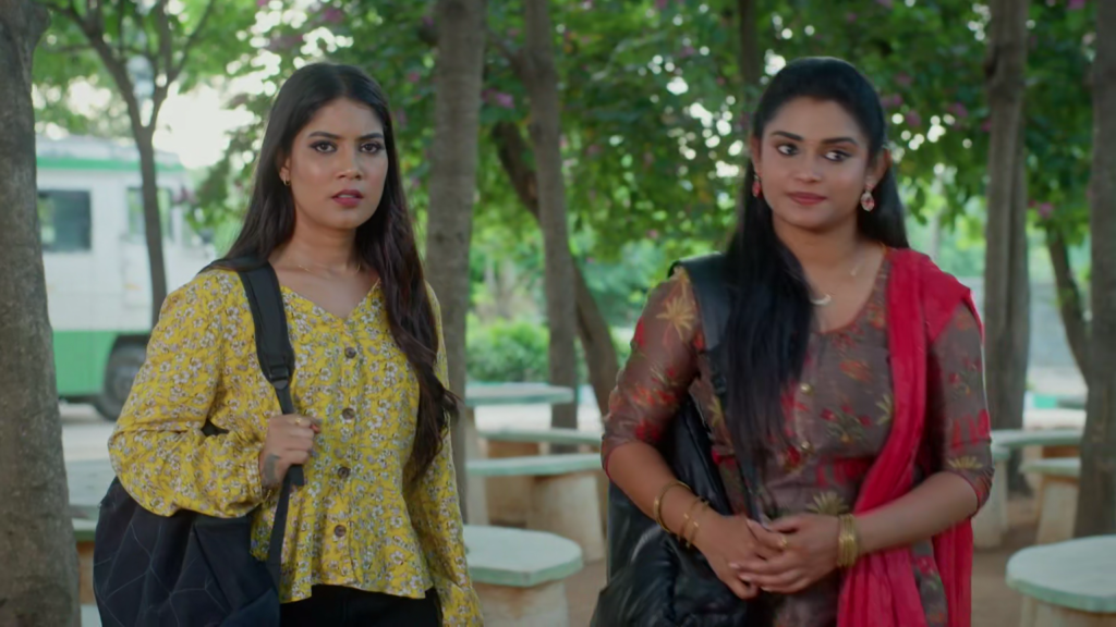 లోహిత చందుతో మాట్లాడుతుండగా, దాన్ని శ్రేయ దూరం నుండి చూస్తుంది. శ్రేయ, లోహిత దగ్గరకు వెళ్లి అతను నీతో ఎందుకు మాట్లాడుతున్నాడు అని ప్రశ్నిస్తుంది. లోహిత, శ్రేయతో చందు సార్ తనకు తెలిసినవాడని, తాను మధు ఇంట్లో ఉంటుందని, అందుకే ఇంటికి వెళ్లమని చెప్పాడని వివరిస్తుంది. అంతలో శ్రేయ లోహిత మేడలో తాళిబొట్టు కనిపించకుండా దాచుకోమని చెప్తుంది. చందు సర్ చూసి మీ ఇంట్లో చెప్తే ప్రాబ్లెమ్ అవుతుంది కదా అని అంటుంది.