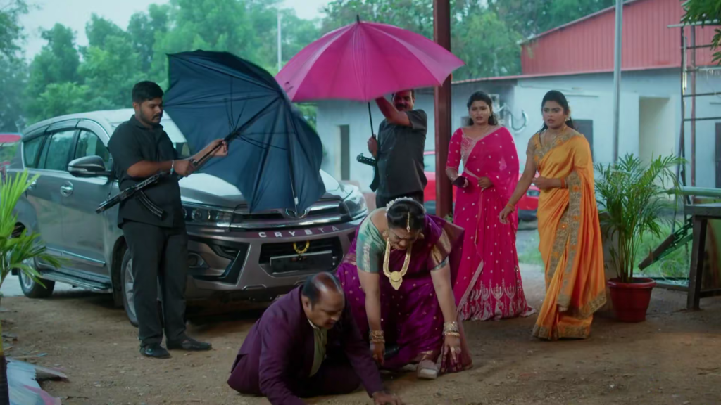 తర్వాత వరుణ్ను చూపించి, “ఇదిగో ఇతనే నా అల్లుడు” అని చెబుతుంది. కానీ ఆర్టిస్టులు తమ పాత్రలోకి వెళ్లి, “మేం ఇతన్ని అల్లుడిగా అంగీకరించం. మనది 20వ ఫ్లోర్ అయితే వీళ్లది గ్రౌండ్ ఫ్లోర్” అని ఆస్తి, అంతస్తులు గురించి ఇష్టం వచ్చినట్టు మాట్లాడతారు. “అర్థం చేసుకోండి” అని లోహిత చెప్పగానే, వాళ్లు ఒక్కసారిగా లోహిత చెంపల మీద కొడతారు.