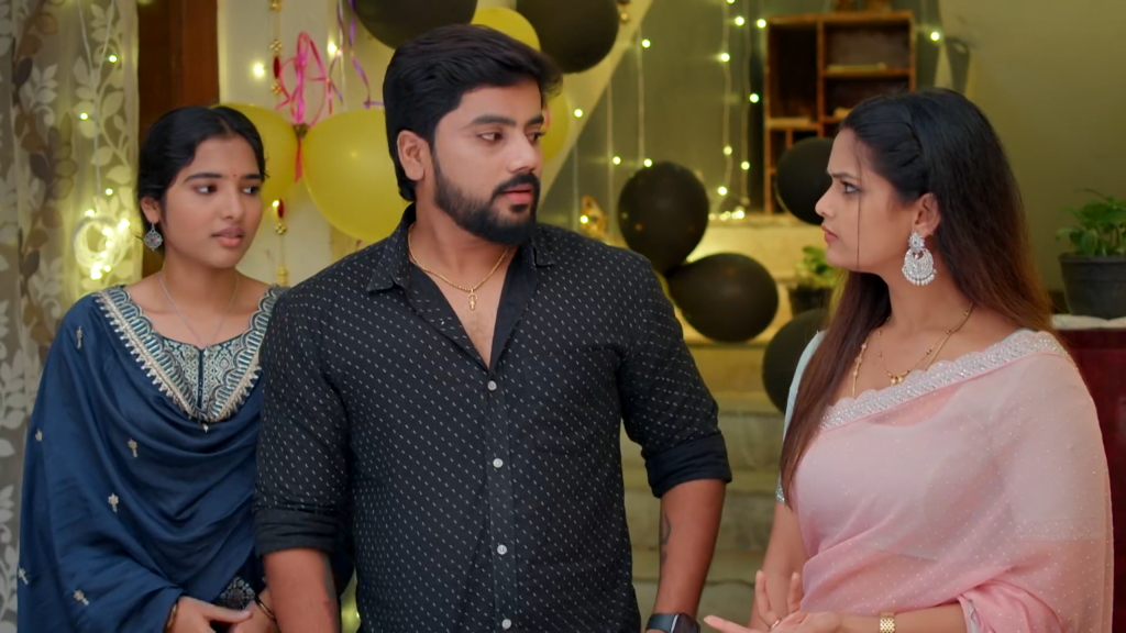 ఇంతలో సుమతి సరదాగా రవి చెవి దగ్గర బెలూన్ పేలుస్తుంది. పెద్ద శబ్ధం రావడంతో రవి ఉలిక్కిపోతాడు. వెంటనే “నిన్నెవడు పెళ్లి చేసుకుంటాడో కానీ వాడే బెలూన్ లా పేలిపోతాడు” అని రవి నవ్వుతూ చెబుతాడు. దానికి సుమతి “ఏమన్నావ్ నన్ను?” అని రవి వెంట పడుతుంది సరదాగా కొట్టడానికి. శ్రుతి తల్లి పక్కనుండి చిరాకు చూపుతుంది. ప్రభావతి కూడా “ఇది ఏ పద్ధతి? పెళ్లి కావాల్సిన అమ్మాయి ఇలా ప్రవర్తిస్తుందా?” అని కామాక్షితో అంటుంది. అంతలా శృతి అక్కడికి వచ్చి ఏమైంది అని అడుగుతుంది. అది చూసి ప్రభావతి శృతి సుమతిని తిడుతుంది అనుకుంటుంది.