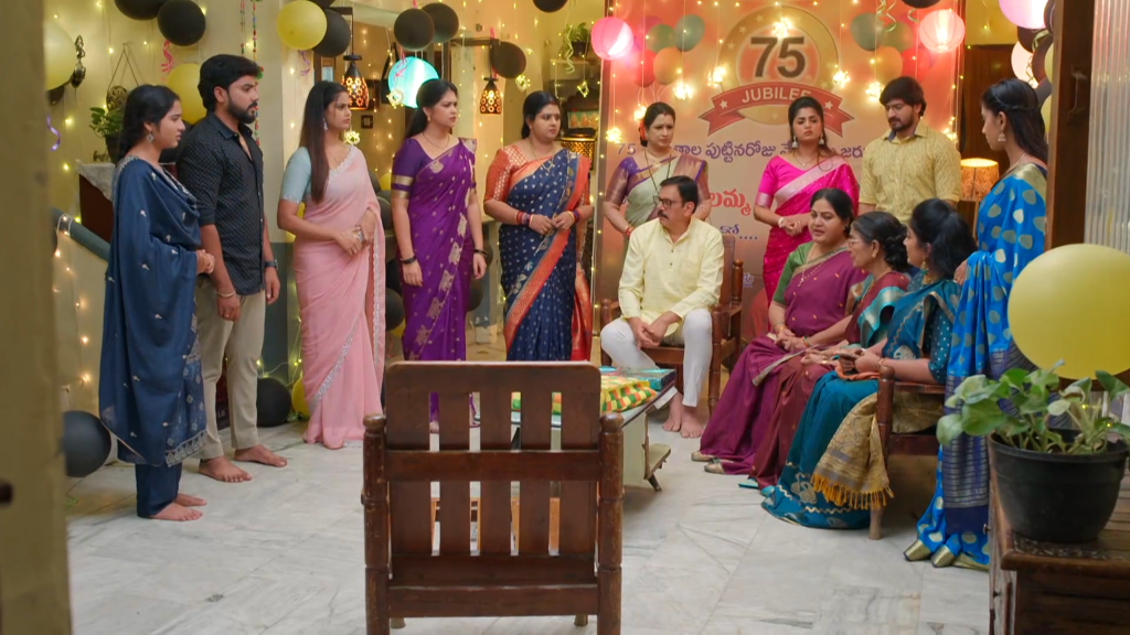 ఎపిసోడ్ ప్రారంభంలో ఇల్లు అంతా దీపాలతో, బెలూన్లతో, సందడితో నిండిపోయి ఉంటుంది. సుశీలమ్మ జన్మదినం సందర్భంగా అందరూ సంతోషంగా ఏర్పాట్లు చేస్తున్నారు. బంధువులు, స్నేహితులు అందరూ వచ్చి కేక్ కటింగ్కు సిద్ధమవుతారు. ఇదే సమయంలో మీనా తల్లి పార్వతి, చెల్లెలు సుమతితో కలిసి అక్కడికి చేరుకుంటారు.