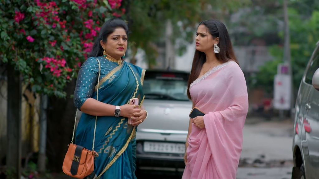 శోభన మౌనిక వైపు తిరిగి ” మీ ఆయన నిన్ను పంపించాడా? నిన్ను బాగానే చూసుకుంటున్నాడా” అని అనుమానంగా అడుగుతుంది. అప్పుడు కామాక్షి సరదాగా “మీ ఆయన నిన్ను బాగా చూసుకుంటున్నారా?” అని అడుగుతుంది. దానికి శ్రుతి తల్లి “ఇదేం ప్రశ్న?” అని అసహనంగా అడుగుతుంది. కామాక్షి కూడా “మరి మీది ఎం ప్రశ్న. ఎవరైనా కొత్తగా పెళ్లి అయినా వాళ్ళని బాగున్నారా కాపురం బాగుందా అని అడుగుతారు. మీరు ఏంటో కొత్తగా పలకరిస్తున్నారు” అని చురక వేస్తుంది. సుశీలమ్మ కూడా “ఎపుడు నువ్వే వస్తావు అంట . మీ ఇళ్లలో మగవాళ్లను వదిలేసి ఆడవాళ్లు ఇంత స్వేచ్ఛగా తిరుగుతారా?” అని అనగానే శ్రుతి తల్లి నిశ్శబ్దంగా కూర్చుంటుంది.