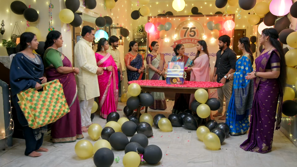 తర్వాత శృతి బహుమతిగా స్మార్ట్ఫోన్ ఇస్తుంది. బామ్మ కొంచెం భయంగా “నాకది వాడటం రాదు” అన్నప్పుడు, శృతి “నేర్పిస్తాను అమ్మమ్మ, కంగారు పడకండి” అని నవ్వుతూ చెప్తుంది. ప్రభావతి కూడా తన బహుమతిని చూపిస్తూ, “అత్తయ్య, నేను మీ కోసం పెద్ద టీవీ తీసుకున్నాను” అని చెప్పి ఇస్తూ ఫోటో తీయమని అడుగుతుంది.