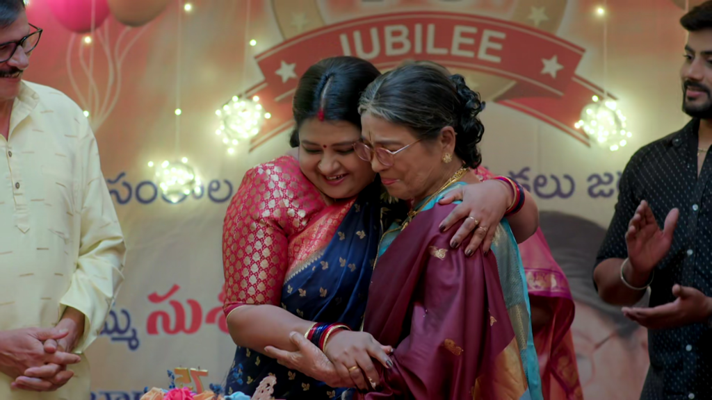 ఈ సంతోషం చూసిన సుశీలమ్మ స్నేహితురాలు ఎమోషనల్ అవుతుంది. “నువ్వు చాలా అదృష్టవంతురాలు. మేడి ముచ్చటైన కుటుంబం. మాకు కూడా పిల్లలు ఉన్నారు. కానీ మా పుట్టినరోజున వేడుక చేయడం కాదు కనీసం ఫోన్ కూడా చేయరు” అని బాధ పడుతుంది. సుశీలమ్మ ఆమె చేయి పట్టుకుని ఓదారుస్తుంది.