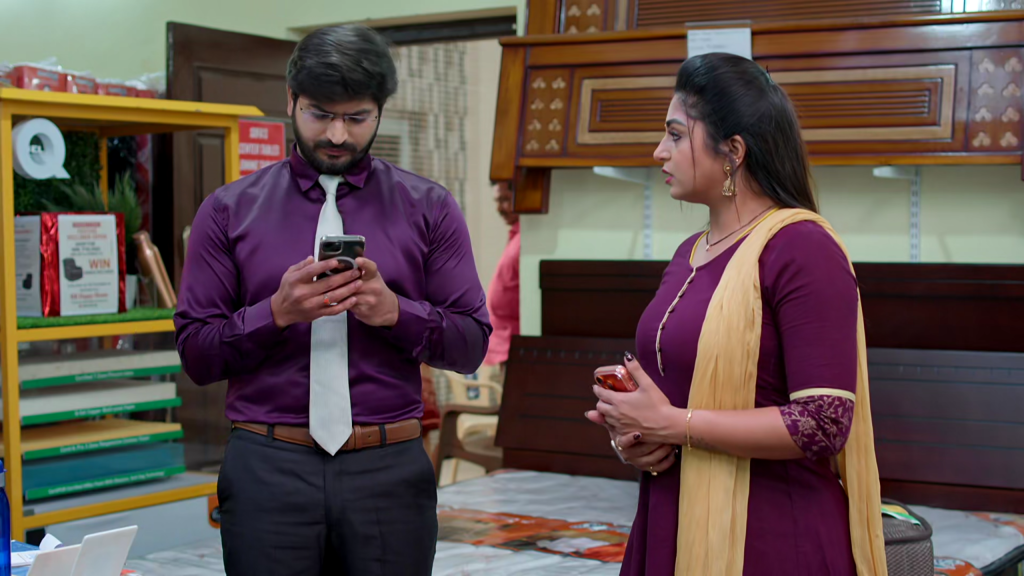 వెంటనే బాలు శృతికి ఫోన్ చేసి రెస్టారెంట్కి రమ్మంటాడు. అలా బాలు, మీనా, శృతి, రవి అందరు నకిలీ నగల విషయం గురించి ఒక టేబుల్ దగ్గర కూర్చొని చర్చిస్తారు. బాలు తన పూర్తి ప్లాన్ చెబుతాడు “షాపు వాళ్లు అన్నట్టు మాట్లాడి మనోజ్ని బైటపెడదాము” అని. శృతి కూడా “సరే, నేను మాట్లాడుతాను. దొంగని కనిపెట్టడం నాకు కూడా ఇష్టమే” అని ఒప్పుకుంటుంది. రవి మాత్రం “ప్లాన్ ఎక్కడో తేడా కొడుతోంది ఏమో” అని భయపడుతూ అంటాడు. శృతి అతనిని అడ్డుకొని “మనం ఏమి తప్పు చేయడం లేదు. ఊరికే భయపడకు. ముందు నేను మాట్లాడటం ప్రాక్టీస్ చేస్తా” అని అంటుంది.