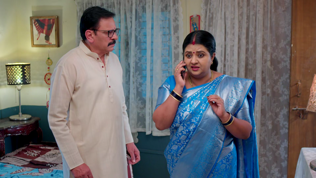 ఇంట్లో మాత్రం సత్యం మౌనిక సంగతి ఆలోచిస్తూ బాధపడుతూ ఉంటాడు. అతని మీనా మాటలు గుర్తు చేసుకుంటూ మనసులో, “నా కూతురు సంతోషంగా లేదేమో,” అన్న అనుమానంతో ఆలోచిస్తుంటాడు. ప్రభావతి వచ్చి తనకి కూడా భయంగా ఉంది అని అతన్ని ఫోన్ చేయమని ఒత్తిడి చేస్తుంది. మౌనిక ఫోన్ మోగగానే సంజూ కోపంతో ఫోన్ తీసుకోవాలని ప్రయత్నించినా, మౌనిక, “ఇప్పుడు నేను మాట్లాడకపోతే బాలు అన్నయ్య ఇంటికి వస్తాడు వస్తే ఏం చేస్తాడో మీకు తెలుసు,” అని చెప్పడంతో అతను ఒప్పుకోవాల్సి వస్తుంది.