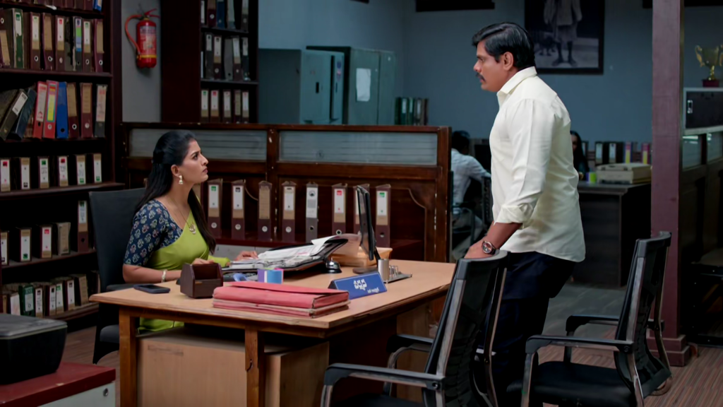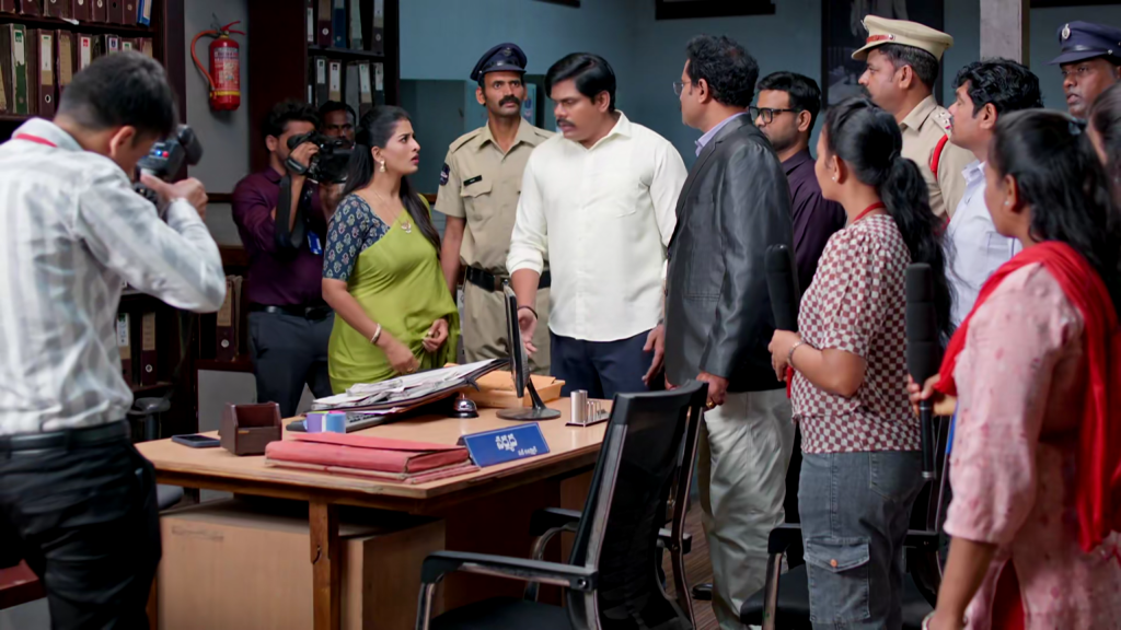 ఆ వ్యక్తి మాత్రం “మేడమ్ అబద్దం చెప్తున్నారు, సంతకం పెట్టడానికి లంచం అడిగారు. నేను ఇవ్వగానే పట్టుబడ్డారని ప్లేట్ మారుస్తున్నారు” అని చెబుతాడు. నర్మద కోపంగా “అబద్దాలు చెబుతున్నావు” అని చెప్పగా, ఆఫీసర్ “మీరు ఇలా బెదిరించడం కూడా నేరమే అని చెప్పాము కదా. సాక్ష్యాలు ఉన్నాయి. వీడియో ఫుటేజ్ కూడా ఉంది. ఏమైనా ఉంటే మా ఆఫీస్ కి వచ్చి మాట్లాడండి” అని హెచ్చరిస్తాడు.