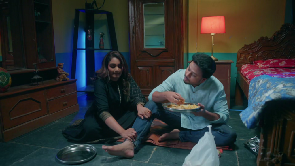 ఈరోజు ఎపిసోడ్ లో కమల్ బిర్యానీ ప్యాకెట్ తెరిచి పల్లవి ముందే కూర్చొని ఒక్కో ముక్క రుచి చూస్తూ తింటూ ఉండగా, పల్లవి మాత్రం పక్కనే ఆకలితో చూస్తూ “బావా, నాకూ కొంచెం పెట్టవా?” అని బ్రతిమిలాడుతుంది. కానీ కమల్ మాత్రం “నేను కరెంట్ పని చేసి సంపాదించిన డబ్బుతో కొన్న బిర్యానీ ఇది. నీకు నేను ఆ పని చేయడం ఇష్టం లేదు కదా. మరి ఇది ఎలా తింటావ్?” అని అంటాడు. పల్లవి ఇంకా అలా అన్నాను అంటూ కొంచం పెట్టు అని బ్రతిమిలాడుతూ ఉంటుంది. అయితే పొద్దున్న నుండి పని చేసి ఒళ్ళు నొప్పులుగా ఉన్నాయి అని కమల్ అనడంతో పల్లవి కమల్ కాళ్ళు పట్టి, తలకి చేతులకి మసాజ్ చేస్తుంది. చివరికి కమల్ బిర్యానీ అంత తాను తినేసి పెరుగన్నం ఇచ్చేసి వెళ్తాడు.