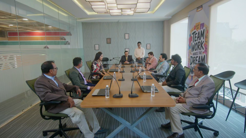 అంతలో లోపల బోర్డ్ మీటింగ్ ప్రారంభమవుతుంది. ఒక సభ్యుడు “ముఖ్యమైన వాళ్లు ఇంకా రాలేదు,” అని చెబుతాడు. అప్పుడే జ్యోత్స్న లోపలికి వస్తూ “ముఖ్యమైన వాళ్లు రాకుండా ఎలా ఉంటారు, అంకుల్?” అని చెబుతుంది. “మనమందరం ఒక్కటిగా ఉండాలి, అప్పుడే అభివృద్ధి జరుగుతుంది,” అని చెబుతుంది.