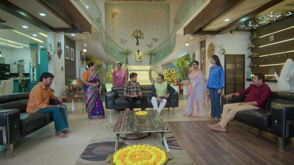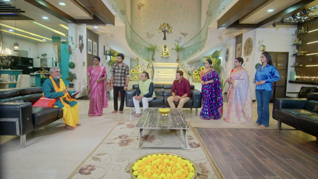 తర్వాత “చాలా పెద్ద ప్రమాదం ఈ ఇంటిని తాకబోతోంది. దీనికి పరిష్కారం హోమం. ఈ ఇంటి రక్తానికి సంబంధించిన ముత్తయిదువులు అందరు హోమానికి రావాలి” అని చెప్తారు. శివన్నారాయణ తన కూతురు జాతకం గురించి చెప్పమని గురువు గారిని అడుగుతాడు. గురువు గారు అది హోమం అయ్యాక చెప్తాను అని చెప్తారు.